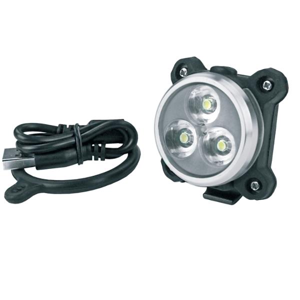 Eclairage avant rechargeable 3 LED 0.5W 120 Lumens.